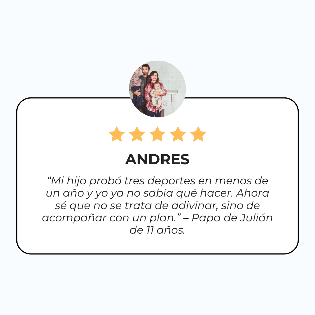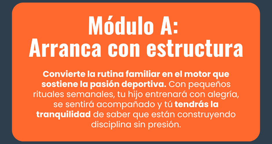 No solo vas a aprender qué hacer como papá o mamá en el deporte, sino que además tendrás recursos prácticos y accionables que convertirán tu apoyo en la diferencia que tu hijo/a recordará siempre.
